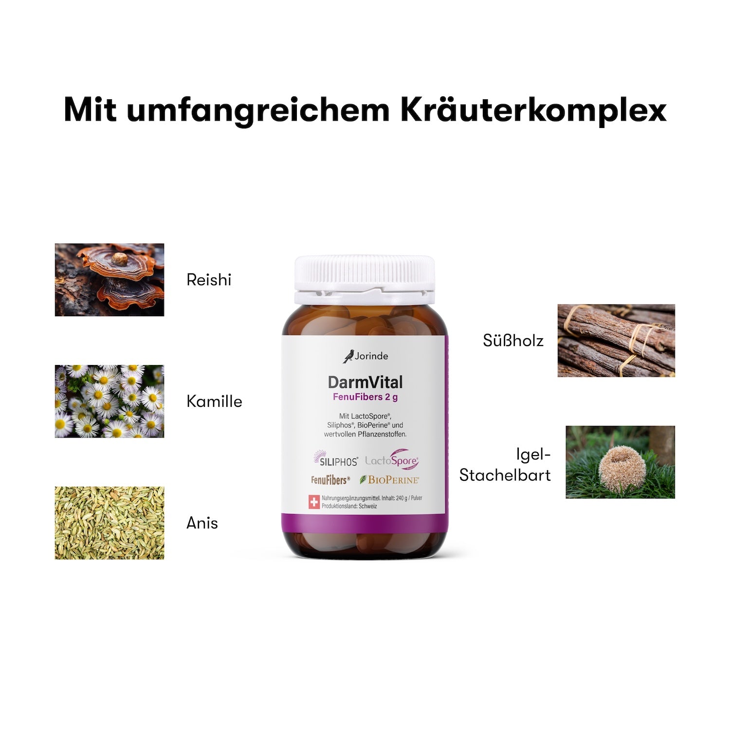 Überragende Technologie dank der führenden Markenrohstoffe: FenuFibers®, LactoSpore®, BioPerine®, Siliphos®