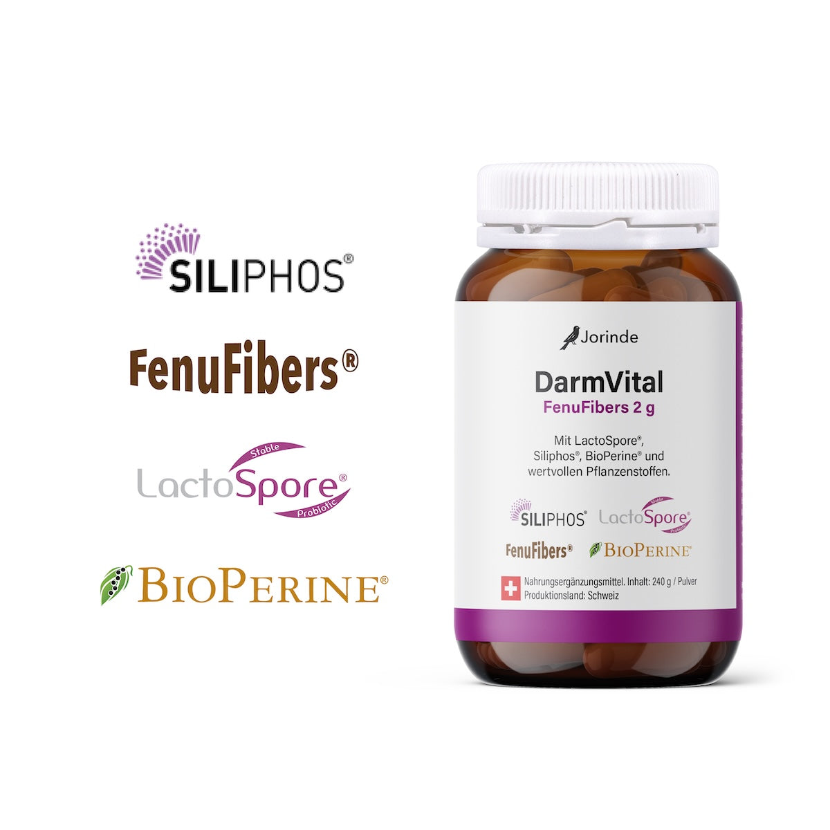 - FenuFibers® fibres alimentaires: Les fibres végétales brevetées de FenuFibers® agissent comme une éponge douce dans l'intestin, absorbent les toxines et facilitent leur élimination. Les fibres FenuFibers® stimulent le mouvement intestinal et favorisent un transit intestinal régulier.